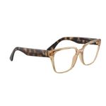- Acabamento em caramelo com hastes havana: sofisticação e exclusividade.